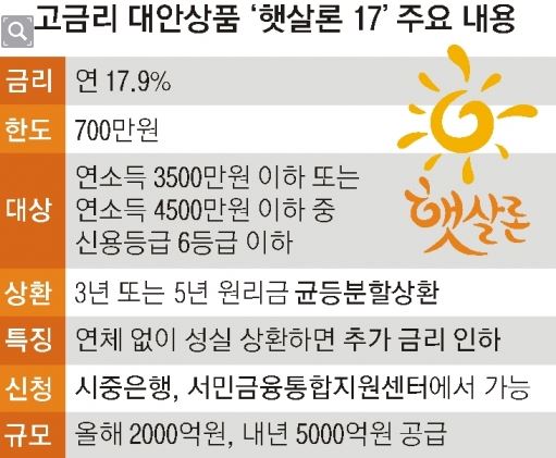 이런 내용 등을 담은 고금리 대출 대안상품 '햇살론 17' 출시 계획을 발표했다고 합니다.