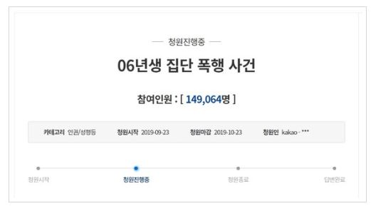 '06년생 집단 폭행 사건'이라는 제목의 청원글이 게재되면서
